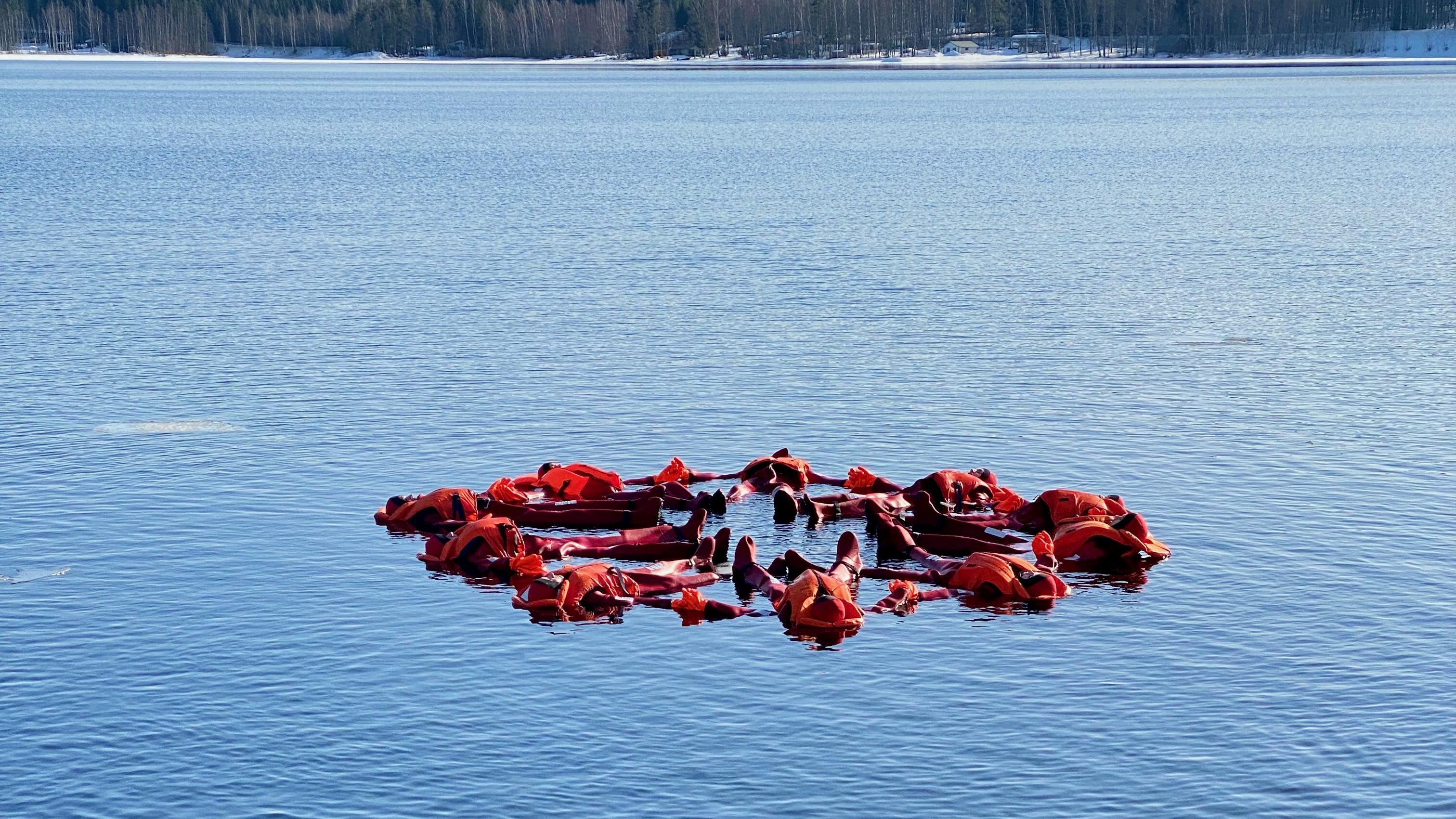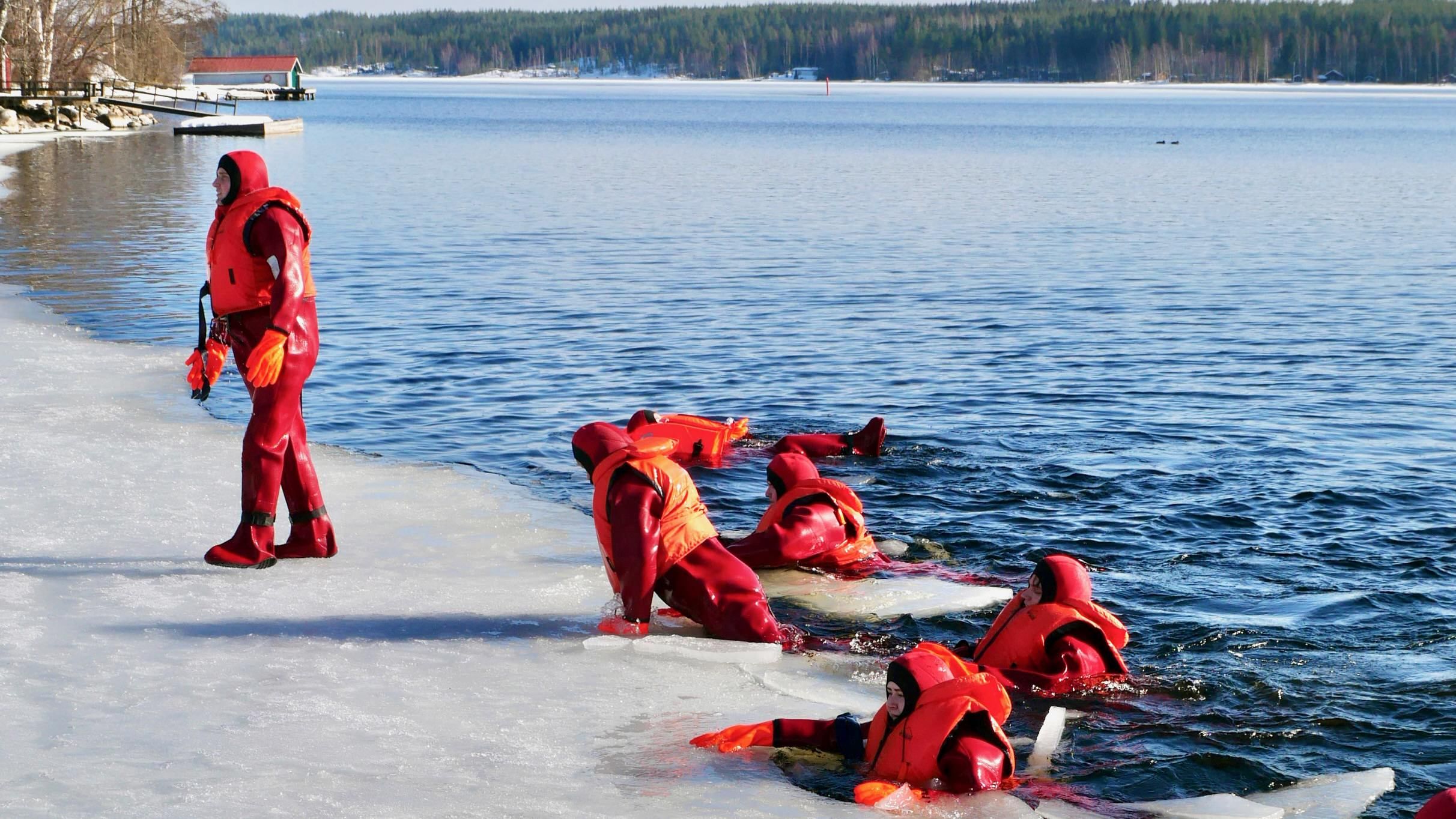 Join the happy finn guide Arto in an arctic winter experience, ice floating in frozen lake wearing safety suits. “Saimaa on the rocks” Ice floating is a private experience for small groups organized in Puumala by lake Saimaa. Using professional grade safety suits, we jump in frozen water upstream and float downstream like a cork. Like jumping on parachute lakeland style. This program is good for all healthy persons 15-60 years old. If you have doubts about participating, contact guide before ordering. The stream area of Puumala strait does not freeze even on the coldest days and it is the perfect place for this arctic ice floating experience.